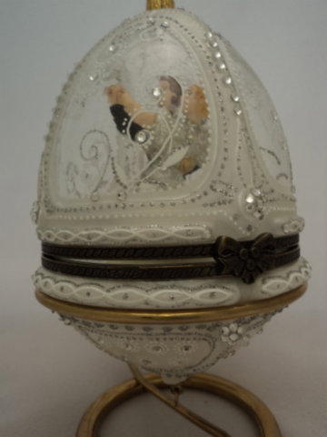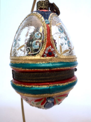 Christel Dauwe Collection : christmas decoration : Faberge style hinged egg with Peacock