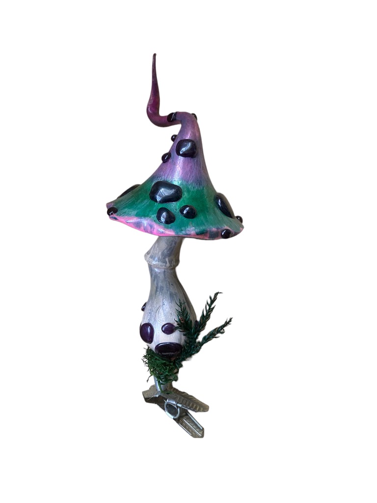 This mushroom takes you on a journey to fairy wonderland. I believe this colour scheme only exsist in fairy tails. And by putting this ornament in our chritmas tree we take a little bit of this magic into our homes and our hearts.